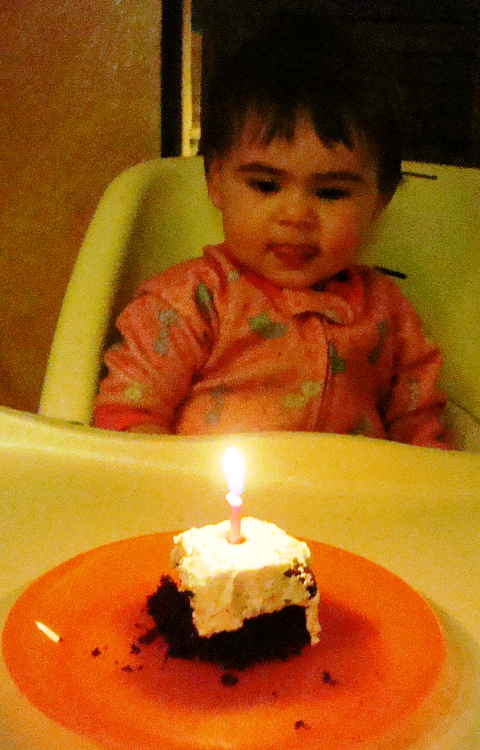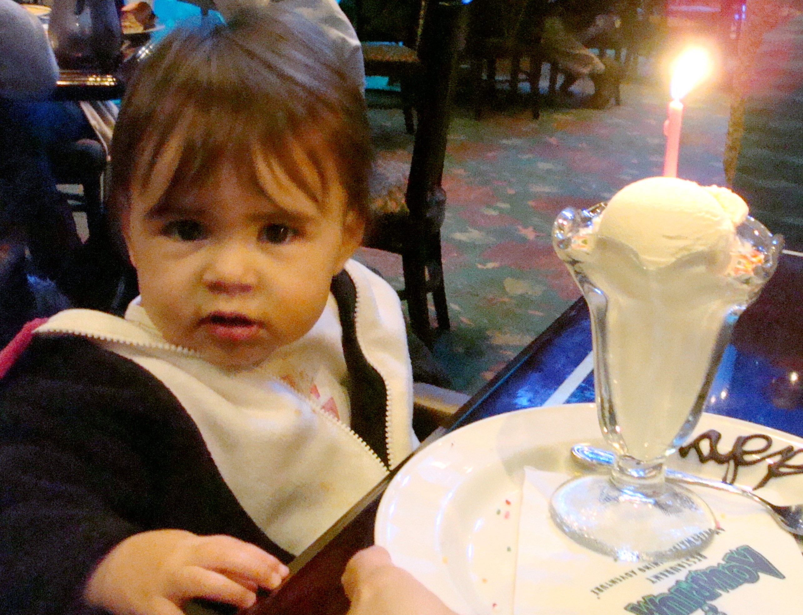 Maya fascinated by the candle and ice-cream