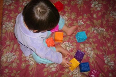 Maya with blocks – a classic 1 year-old present