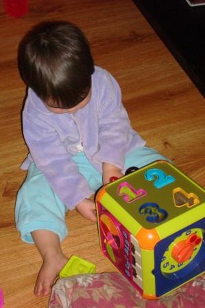 Maya with a toy cube